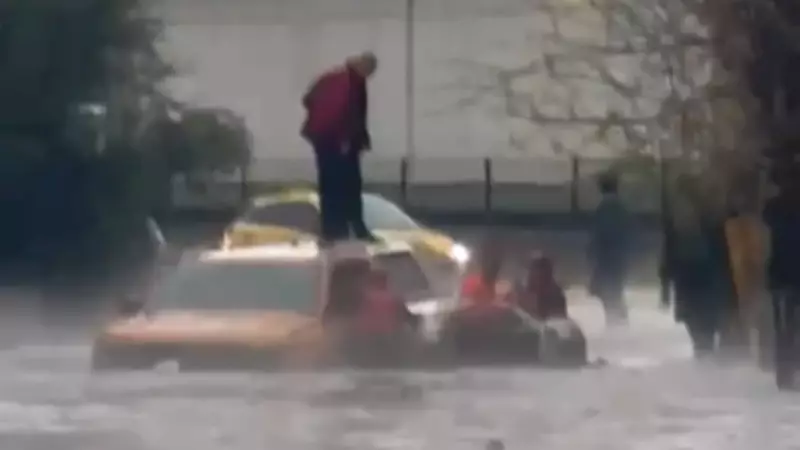 Merkez Çukurova ilçesine bağlı Yurt Mahallesi'nde, su baskınına uğrayan bir yolda mahsur kalan otomobildeki sürücü ve yolcu, hayatlarını kurtarmak için araçlarının üzerine çıkmak zorunda kaldı. İhbar üzerine hızla olay yerine intikal eden itfaiye ekipleri, zorlu hava koşullarına rağmen mahsur kalan iki vatandaşı başarılı bir operasyonla kurtararak güvenli bir alana aldı.