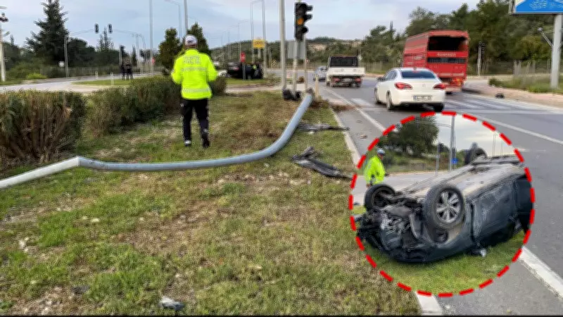 Araç, önce bir aydınlatma direğine, ardından da trafik ışıklarına çarparak ters halde metrelerce sürüklendi. Bu şok edici olayda, araç kavşağın ada kısmına çıkarak durdu. Sürücü ve yanındaki yolcu, kazayı hiçbir fiziksel yara almadan atlatmayı başardı, bu durum görenleri hayrete düşürdü.