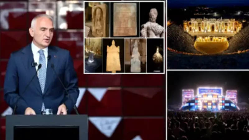 Kültür ve Turizm Bakanı Mehmet Nuri Ersoy, Atatürk Kültür Merkezi'nde düzenlenen basın toplantısında önemli açıklamalarda bulundu. Ersoy, müzeden sahneye, kütüphaneden kazı alanlarına kadar kültür ve sanatın birçok alanında Türkiye'nin 2025 yılında Cumhuriyet tarihinin en yüksek rakamlarına ulaştığını vurguladı.