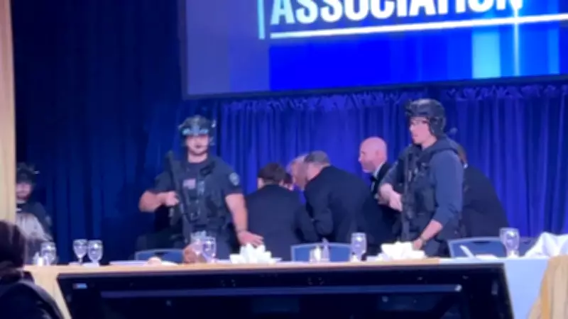Washington'da canlı yayında verilen etkinlikte yemek servisinin başlamasından kısa süre sonra silah ve bağırma sesleri yükselirken Trump'ın koruma ekipleri uzun namlulu silahlarla salonda görüldü. Güvenlik bariyerlerini yıkarak Trump'ın oturduğu masaya ulaşan güvenlik birimleri, ABD Başkanı ve eşi Melania Trump'ı hızla aralarına alarak salondan uzaklaştırdı.
