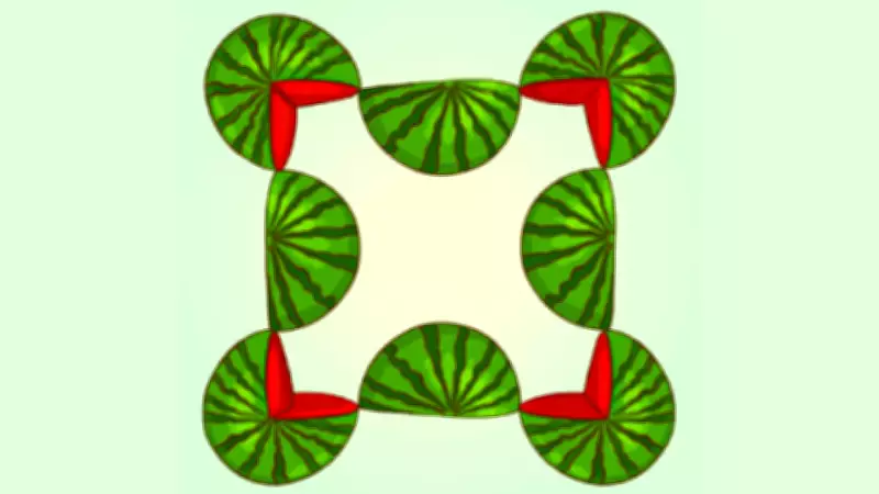 Cevap: Ortadaki yarım karpuzlar çeyrek olarak, çeyreği eksik köşedeki karpuzlara bölüştürüldüğünde toplamda 5 karpuz ediyor. Matematiksel mantık ve görsel parçalama bu soruda öne çıkıyor.