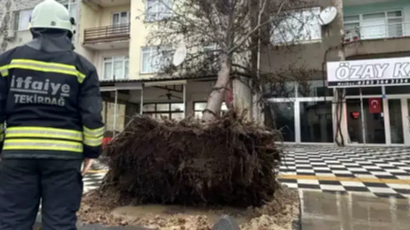 Tekirdağ'ın Muratlı ilçesinde, aniden bastıran şiddetli rüzgarın neden olduğu bir olayda, kökünden sökülen büyük bir ağaç, yerleşim alanındaki bir kahvehanenin çatısına doğru devrildi. Rüzgarın etkisiyle meydana gelen bu kaza, bölge sakinlerinde kısa süreli bir tedirginlik yarattı.