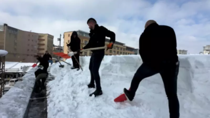 Hakkari'nin Yüksekova ilçesinde etkili olan yoğun kar yağışı, günlük yaşamı olumsuz etkilemeye devam ederken, bina çatılarında oluşan dev kar kütleleri ve buz sarkıtları ciddi tehlike arz etmeye başladı. İlçe genelinde kar kalınlığının yer yer 2 metreyi bulduğu bu dondurucu kış günlerinde, Cumhuriyet Mahallesi’nde faaliyet gösteren bir alışveriş merkezinin çatısında biriken kar miktarının tehlikeli boyuta ulaşması üzerine harekete geçildi.